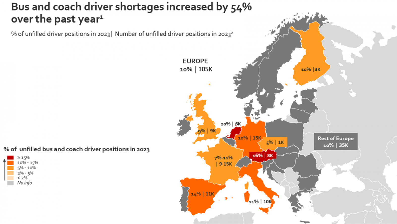 Analýza IRU o nedostatku řidičů v roce 2023 ukázala, že neobsazených míst řidičů autobusů v Evropě přibývá. Předpokládá se, že v příštích pěti letech se situace, bez významných opatření, navíc ještě zhorší.