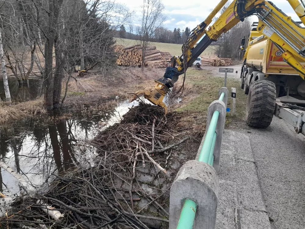 Správci silnice proto museli po konzultaci s přírodovědci a ochránci přírody přijít s jiným řešením. Bobří hráz částečně narušili a proložili ji kanalizačními rourami. Vtok do jednotlivých rour pak museli ohradit sítěmi, aby ho bobr neucpal.